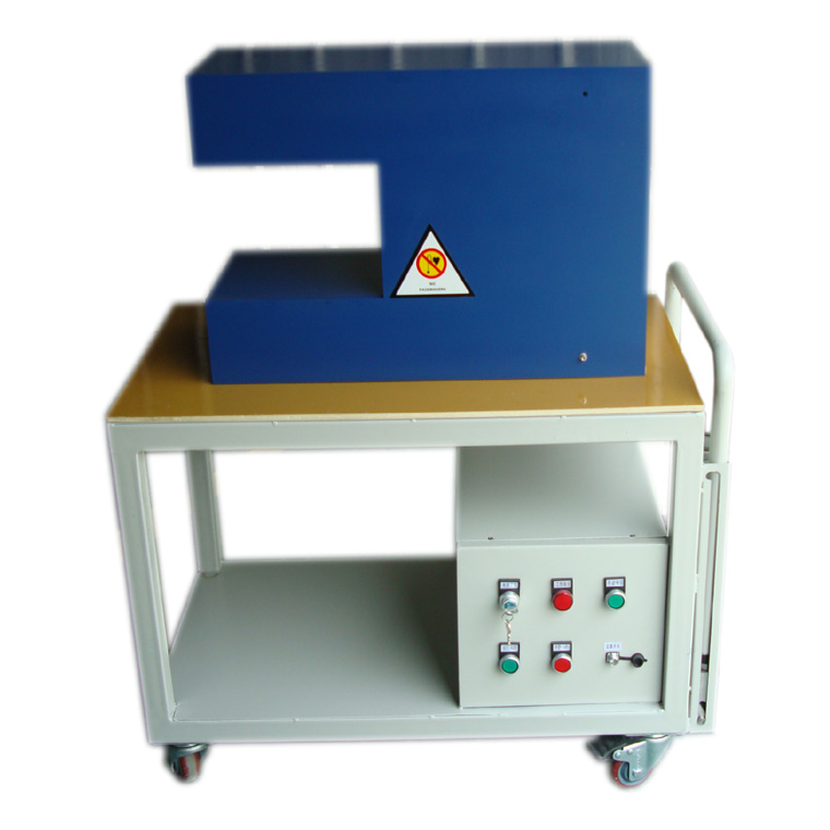 本退磁機/脫器磁路加上交流激磁電流后,在C字形磁路中產生交變退磁磁場,當工件從C字形交變場中勻速通過時,作用到工件上的磁感應強度線性衰減而使工件退磁/脫磁。